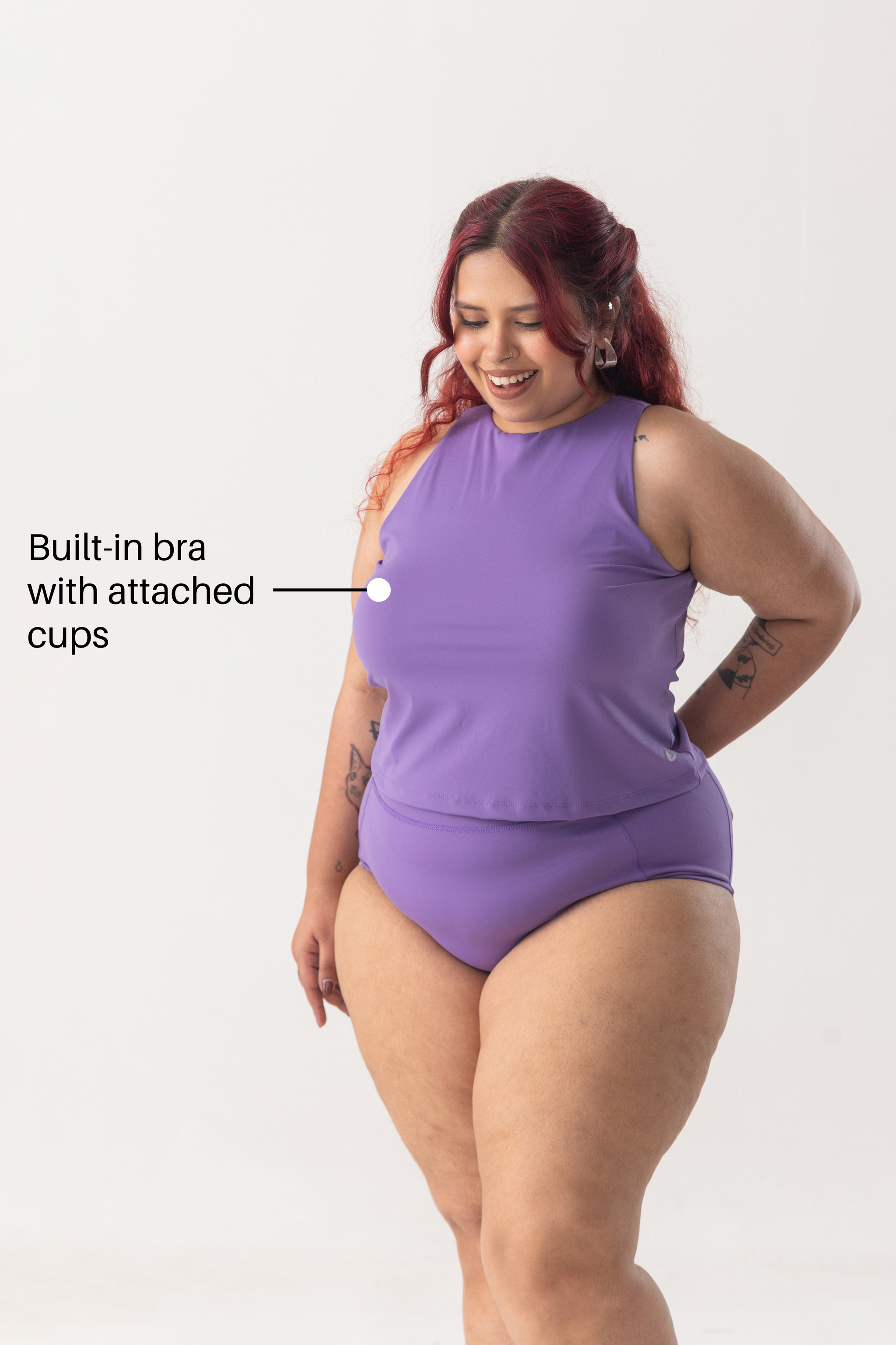 - Built-in bra with attached cups